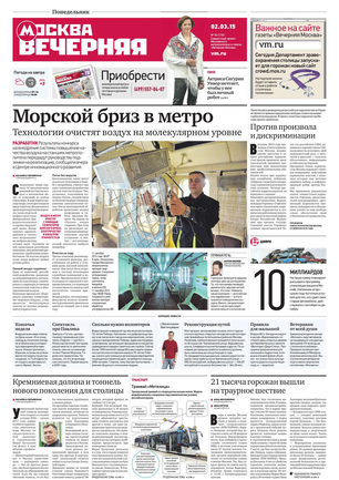 «Вечерняя Москва» — ежедневная российская вечерняя газета, старейшее из вечерних изданий в России, учрежденное в 1923 году. Выходит пять дней в неделю, кроме субботы и воскресенья. Отличается тем, что рассказывает о событиях еще не завершившегося дня. Оперативно освещает хронику и особенности жизни Москвы, охватывает все слои общества и большинство профессиональных и возрастных групп читателей.Издание представлено тремя выпусками – утренним ежедневным, вечерним (выходит три раза в неделю), еженедельным (выходит по четвергам).