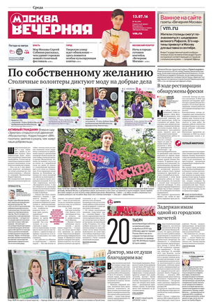 «Вечерняя Москва» — ежедневная российская вечерняя газета, старейшее из вечерних изданий в России, учрежденное в 1923 году. Выходит пять дней в неделю, кроме субботы и воскресенья. Отличается тем, что рассказывает о событиях еще не завершившегося дня. Оперативно освещает хронику и особенности жизни Москвы, охватывает все слои общества и большинство профессиональных и возрастных групп читателей.Издание представлено тремя выпусками – утренним ежедневным, вечерним (выходит три раза в неделю), еженедельным (выходит по четвергам).