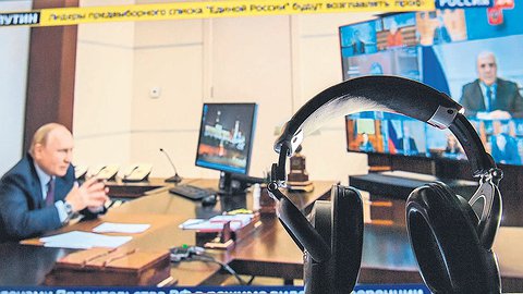 27 сентября президент России Владимир Путин встретился в режиме видео-конференц-связи с лидерами предвыборного списка «Единой России» (ЕР), а также с лидерами правительства России — ее председателем и вице-премьерами. Специальный корреспондент “Ъ” Андрей Колесников — о том, зачем президенту нужны были обе встречи в один день.