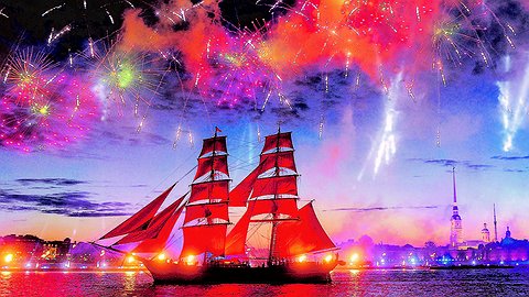 В ночь на субботу в Петербурге прошел самый романтичный, красивый и масштабный праздник выпускников школ в нашей стране - "Алые паруса". Он стартовал выступлением творческих коллективов, победивших в открытом кастинге молодежной программы. Среди них - группа "Петербургская Лек5ема", получившая специальный приз газеты "Известия". Вечер продолжился масштабным шоу с участием звезд российской эстрады. А после концерта в 0.40 в акваторию Невы между Зимним дворцом, Петропавловской крепостью и Стрелкой Васильевского острова под аккомпанемент грандиозного фейерверка вышел шведский бриг Tre Kronor с алыми парусами - точь-в-точь такими, какие были описаны в знаменитой книге Александра Грина, давшей название празднику. По данным петербургского управления МВД, зрителями праздника стали в общей сложности около двух миллионов человек. Причем на Дворцовую площадь и набережную в основном пускали только выпускников, а уже с других точек проход парусника могли видеть все желающие.