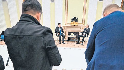 — Об этом, так же как и о других проблемах, мы, безусловно, поговорим сегодня в ходе вашего визита. У нас после такой встречи в широком формате еще запланирован разговор в ходе ланча тет-а-тет, с глазу на глаз,— еще более мирно закончил Владимир Путин.