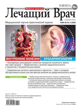 Научно-практический медицинский журнал, рекомендован Высшей Аттестационной Комиссией (ВАК).