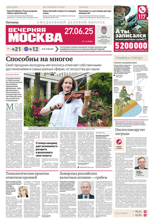 «Вечерняя Москва» — ежедневная российская вечерняя газета, старейшее из вечерних изданий в России, учрежденное в 1923 году. Выходит пять дней в неделю, кроме субботы и воскресенья. Отличается тем, что рассказывает о событиях еще не завершившегося дня. Оперативно освещает хронику и особенности жизни Москвы, охватывает все слои общества и большинство профессиональных и возрастных групп читателей.Издание представлено тремя выпусками – утренним ежедневным, вечерним (выходит три раза в неделю), еженедельным (выходит по четвергам).