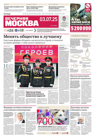 «Вечерняя Москва» — ежедневная российская вечерняя газета, старейшее из вечерних изданий в России, учрежденное в 1923 году. Выходит пять дней в неделю, кроме субботы и воскресенья. Отличается тем, что рассказывает о событиях еще не завершившегося дня. Оперативно освещает хронику и особенности жизни Москвы, охватывает все слои общества и большинство профессиональных и возрастных групп читателей.Издание представлено тремя выпусками – утренним ежедневным, вечерним (выходит три раза в неделю), еженедельным (выходит по четвергам).