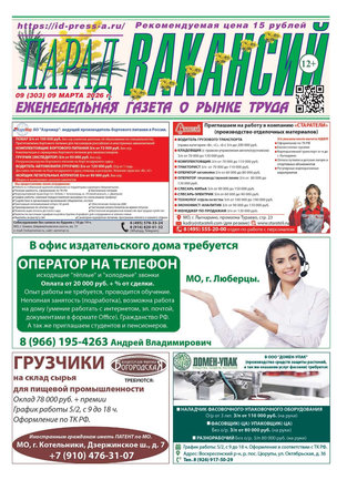 ЕЖЕНЕДЕЛЬНАЯ ГАЗЕТА О РЫНКЕ ТРУДА ПАРАД ВАКАНСИЙ