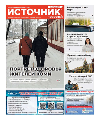 Еженедельная газета «Источник новостей» – одно из самых популярных изданий в Республике Коми. Основные темы: информация о событиях в регионе, политика, культура, социальные проблемы и многое другое. Еженедельник рассчитан на широкий круг читателей.