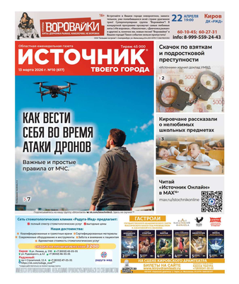 Еженедельная газета «Источник твоего города» распространяется в Кировской области. На страницах издания публикуется актуальная и полезная информация.