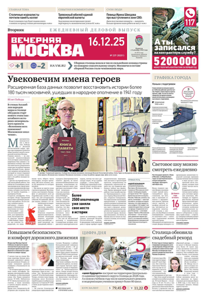 «Вечерняя Москва» — ежедневная российская вечерняя газета, старейшее из вечерних изданий в России, учрежденное в 1923 году. Выходит пять дней в неделю, кроме субботы и воскресенья. Отличается тем, что рассказывает о событиях еще не завершившегося дня. Оперативно освещает хронику и особенности жизни Москвы, охватывает все слои общества и большинство профессиональных и возрастных групп читателей.Издание представлено тремя выпусками – утренним ежедневным, вечерним (выходит три раза в неделю), еженедельным (выходит по четвергам).