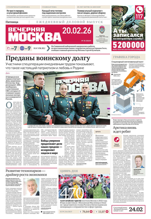 «Вечерняя Москва» — ежедневная российская вечерняя газета, старейшее из вечерних изданий в России, учрежденное в 1923 году. Выходит пять дней в неделю, кроме субботы и воскресенья. Отличается тем, что рассказывает о событиях еще не завершившегося дня. Оперативно освещает хронику и особенности жизни Москвы, охватывает все слои общества и большинство профессиональных и возрастных групп читателей.Издание представлено тремя выпусками – утренним ежедневным, вечерним (выходит три раза в неделю), еженедельным (выходит по четвергам).